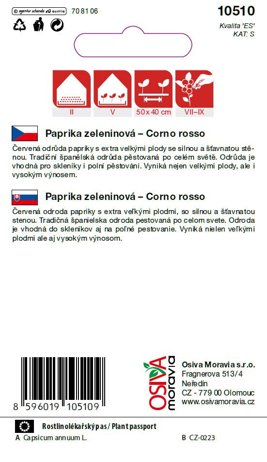 Paprika Corno Rosso je tradičná španielska odroda, ktorá si získala obľubu u záhradkárov po celom svete. Je charakteristická svojimi extra veľkými plodmi podlhovastého tvaru, ktoré pripomínajú býčí roh. Tieto plody majú hrubú, mäsitú a mimoriadne šťavnatú stenu, čo z nich robí ideálnu voľbu nielen na priamu konzumáciu a do čerstvých šalátov, ale aj na grilovanie či konzervovanie. Odroda vyniká vysokou úrodnosťou a stabilitou v rôznych pestovateľských podmienkach.